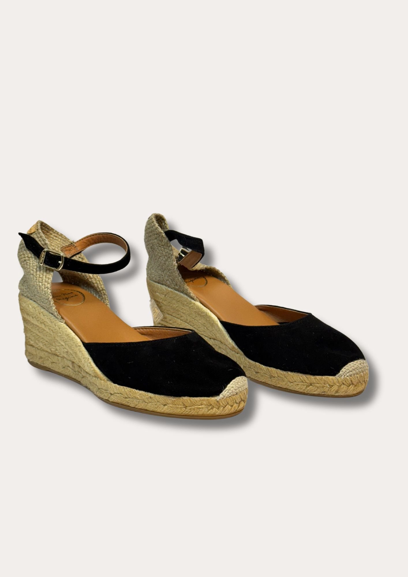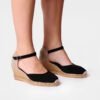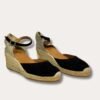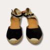 LLORET-5. Cette espadrille en daim pour femme est réalisée dans des tons unis. Elle a une hauteur totale de 7 cm, dont 5 cm appartiennent au talon et 2 cm à la plateforme. La semelle extérieure est en jute et la base en caoutchouc antidérapant. La semelle intérieure est doublée de tissu en coton. Le talon est en tissu tressé et possède une fermeture à boucle. La pointe de la chaussure est fermée. Ce modèle chausse la taille habituelle, si vous êtes entre deux tailles nous vous conseillons de prendre une pointure au-dessus.
