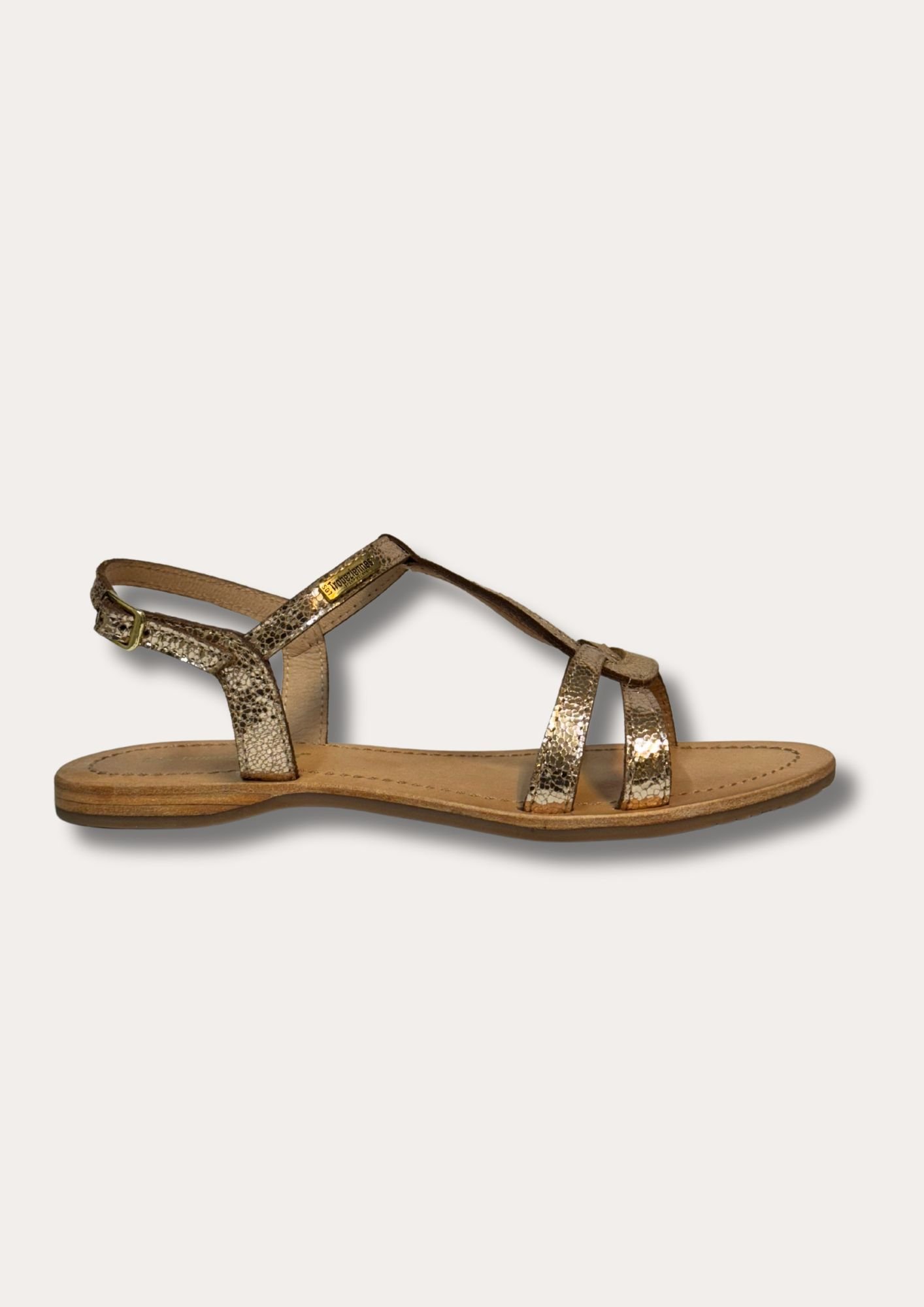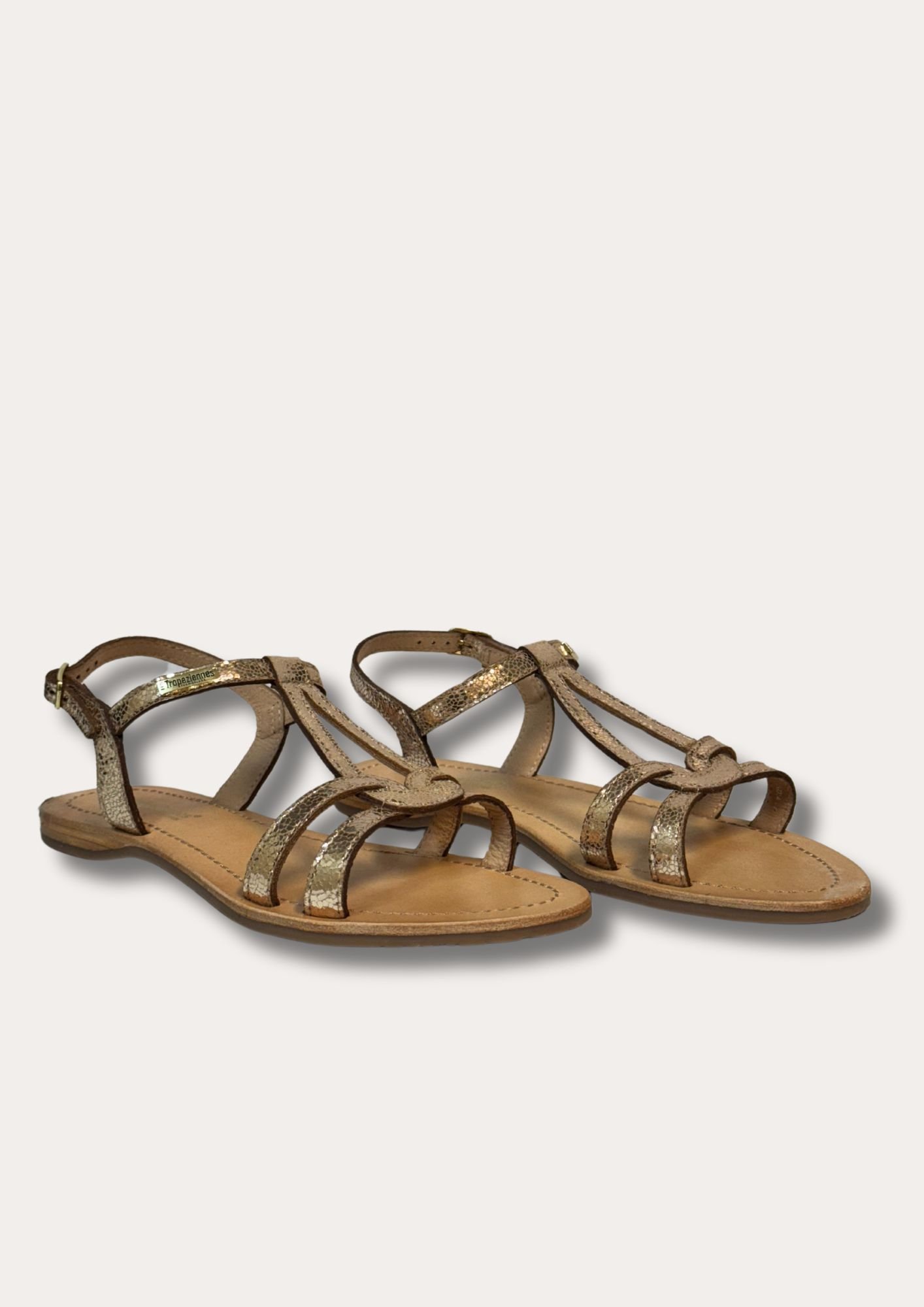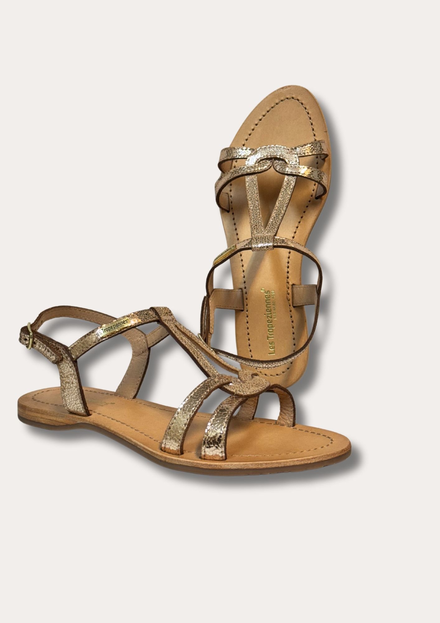 La sandale plate Hacklio est toute en cuir avec des brides croisées qui forment une goutte d’eau sur votre pied.